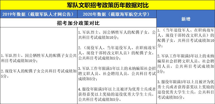2020年軍隊文職考試預公告陸續(xù)發(fā)布!今年招考變化頗多,招錄人數(shù)增加、加分群體范圍擴大、筆試內(nèi)容有調(diào)整、福利待遇增多、免試政策、戶口政策……
